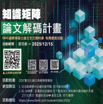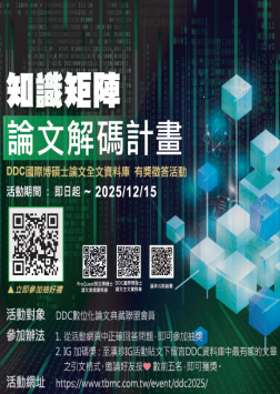 [免費試用]民國初年圖書專著典藏1900-1949年 資料庫 ◼中文簡介:Chinese Monographs of the 20thCentury: 1900-1949民國書庫收錄了自1900年至1949年之間出版的全文圖書超過12萬冊(近8.5萬種),收錄涵蓋哲學宗教、社會科學、政治、法律、軍事、經濟、文化藝術、教育、語言文字、文學、歷史地理、科學與技術、綜合性圖書13個大類,對近現代圖書進行了有序地整合,較為完整的展現了民國時期中西文化從劇烈碰撞到逐漸融合的過程,以及在此過程中各種學術思想呈現出百家爭鳴的時代特點。亦使當代學者可以從中看出對中國當時,可能包括當今的發展方向。Chinese Monographs of the 20th Century: 1900-1949民國書庫內容豐富、分類詳盡、功能完備,可為對中國近現代歷史、文化思想的研究提供豐富、深入的幫助。◼試用網址:http://search.ebscohost.com/login.aspx?profile=ehost&defaultdb=ldcmg   ◼試用期間:期日起至2025/10/31止 2025/09/30